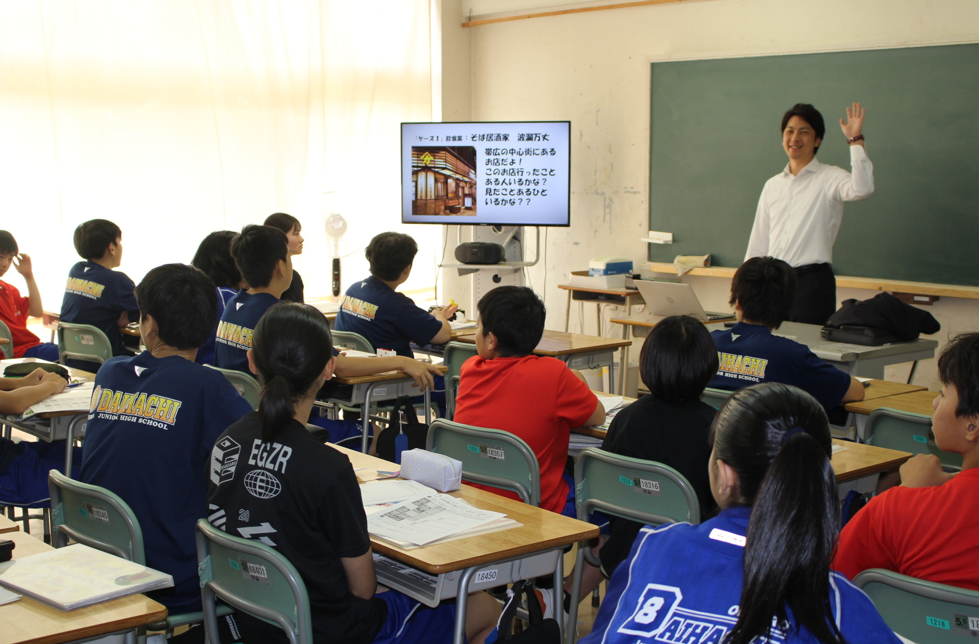 今日は、1年生が総合的な学習の時間に、帯広青年会議所から4名の講師の皆さんをお迎えし、おびひろ市民学「SDGs 持続可能な社会のためにできること」を受講しました。