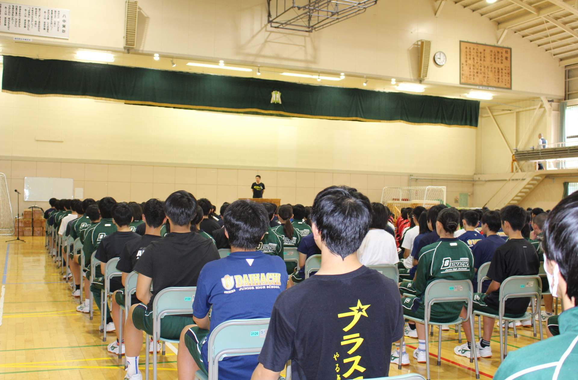 また、整然と整列した全校生徒も大変立派でした。壇上の先生の顔をしっかりと見て話しを聞く姿が素晴らしい!